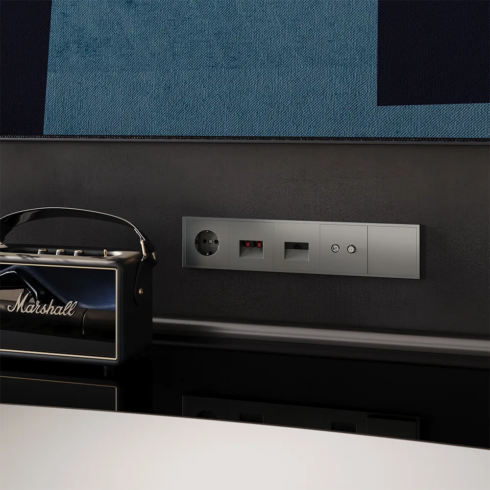 Розетка легко комбинируется с другими устройствами и рамками серии S70 — например, можно разместить рядом телевизионную розетку TV+SAT, электрическую розетку и USB-порт в одной рамке, создав единый медиаблок управления.