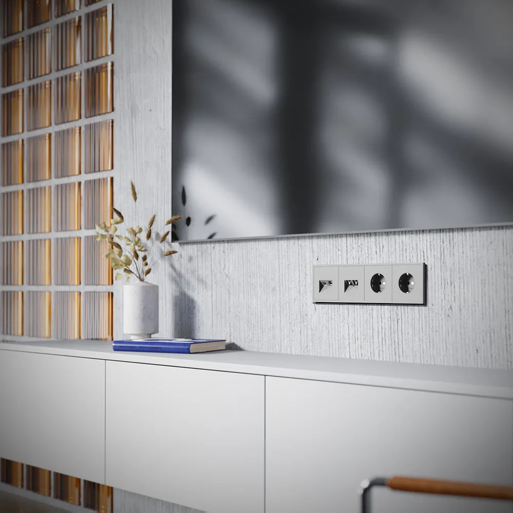 Забудьте о спутанных проводах за телевизором. Комбинированная розетка VOLTUM S70 TV+RJ45 объединяет антенну и гигабитный интернет в одной элегантной точке подключения. Чистый сигнал. Чистая стена. Полный комфорт.