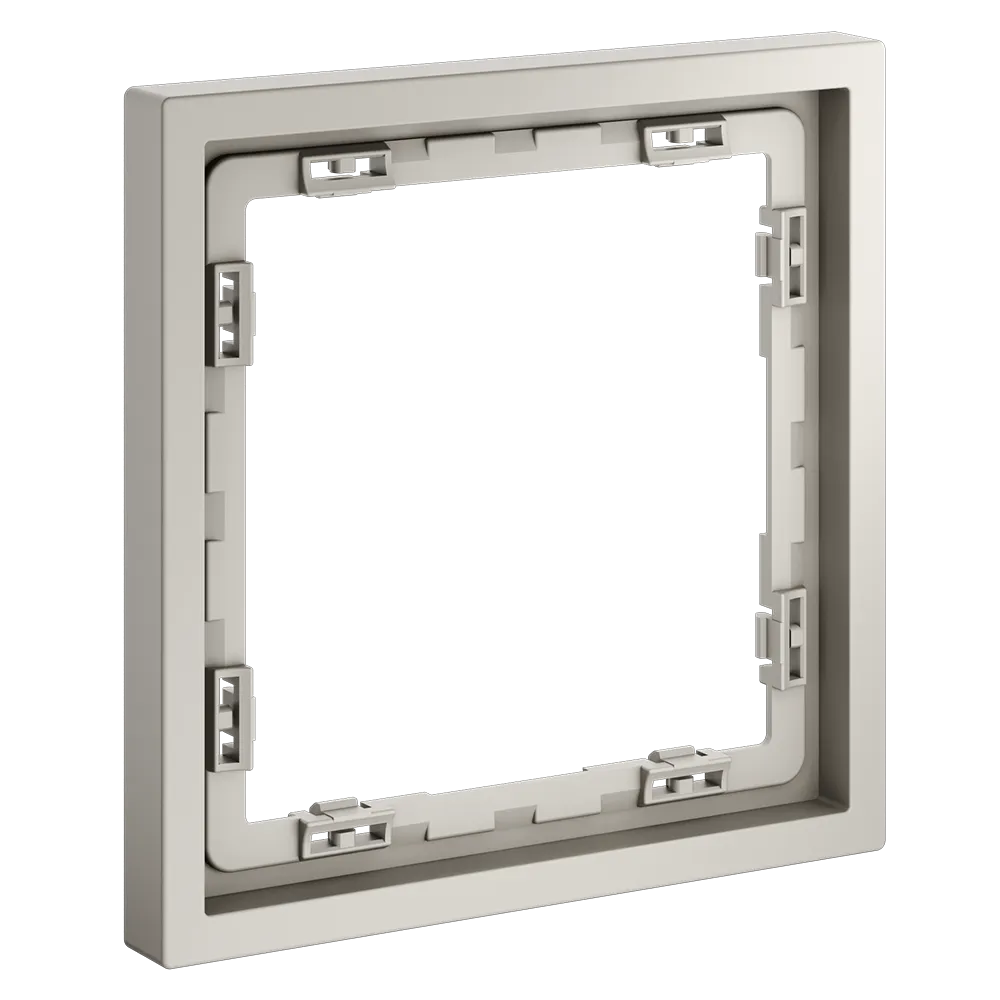 Обеспечивает быстрое и легкое соединение механизма с рамкой. Восемь фиксаторов по периметру нивелируют неровности стены и надежно удерживают конструкцию.