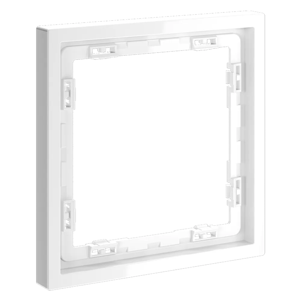 Обеспечивает быстрое и легкое соединение механизма с рамкой. Восемь фиксаторов по периметру нивелируют неровности стены и надежно удерживают конструкцию.